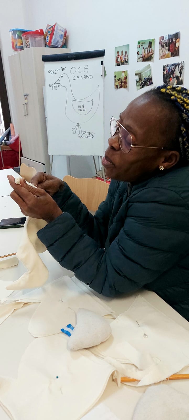 Loro sono Adelina e Guendalina, le oche realizzate dalle beneficiarie inserite nel progetto 𝐒𝐀𝐈 – 𝐒𝐢𝐬𝐭𝐞𝐦𝐚 𝐝𝐢 𝐀𝐜𝐜𝐨𝐠𝐥𝐢𝐞𝐧𝐳𝐚 𝐞𝐝 𝐈𝐧𝐭𝐞𝐠𝐫𝐚𝐳𝐢𝐨𝐧𝐞 “𝐂𝐚𝐧𝐝𝐞𝐥𝐚 𝐕𝐮𝐥𝐧𝐞𝐫𝐚𝐛𝐢𝐥𝐢” promosso dal Comune di Candela – Fg e gestito dalla cooperativa sociale Medtraining. Nel laboratorio di di sartoria creativa “𝐓𝐫𝐚𝐌𝐚𝐫𝐞𝐓𝐞𝐫𝐫𝐞” sono riprese le attività curate da Pina Suriano e sta arrivando una nuova macchina per cucire che renderà il lavoro più agile e moderno. In attesa, abbiamo realizzato dei portachiavi e queste oche per la Santa Pasqua. Abbiamo iniziato disegnando un cartamodello su cartoncino di recupero sino a terminare, piano piano, con le varie decorazioni.
