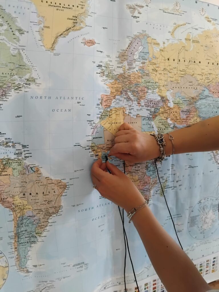 In vista della prossima “𝐆𝐢𝐨𝐫𝐧𝐚𝐭𝐚 𝐌𝐨𝐧𝐝𝐢𝐚𝐥𝐞 𝐝𝐞𝐥 𝐑𝐢𝐟𝐮𝐠𝐢𝐚𝐭𝐨”, anche il progetto 𝐒𝐀𝐈 di Orsara di Puglia è impegnato in alcune attività laboratoriali, come le “Le lingue parlate del mondo”. Con le beneficiarie del 𝐒𝐢𝐬𝐭𝐞𝐦𝐚 𝐝𝐢 𝐀𝐜𝐜𝐨𝐠𝐥𝐢𝐞𝐧𝐳𝐚 𝐞 𝐈𝐧𝐭𝐞𝐠𝐫𝐚𝐳𝐢𝐨𝐧𝐞 promosso dal Comune Orsara di Puglia e gestito dalle cooperative sociali Medtraining e Kaleidos abbiamo collegato con dei fili i vari Paesi di origine delle ragazze con la cartina geografica dell’Italia, il luogo in cui oggi sono accolte. Attraversando il mare, realizzato con dei nastri azzurri, abbiamo “ripercorso” il viaggio che ha portato loro in Italia e abbiamo condiviso pensieri ed emozioni.
