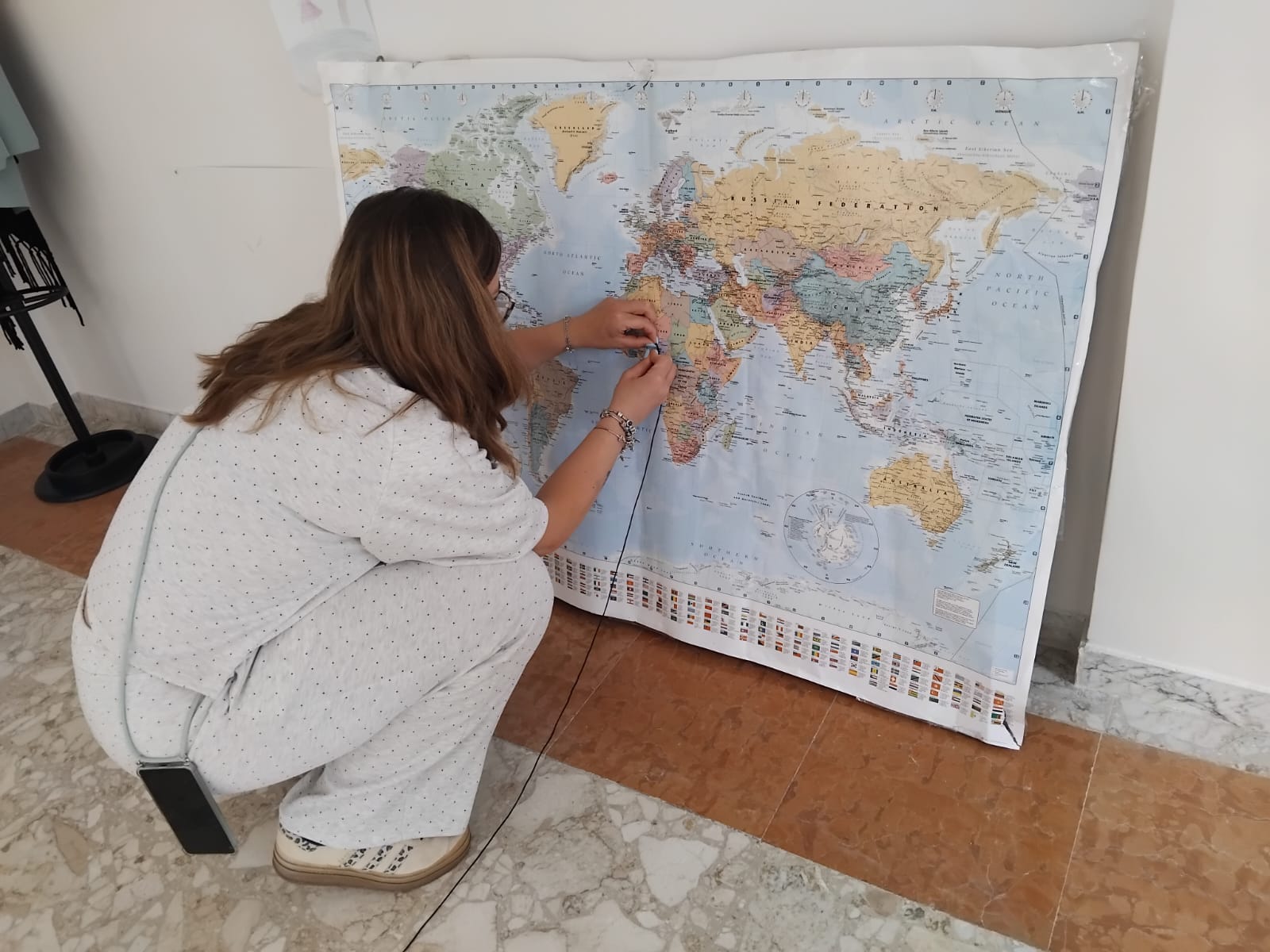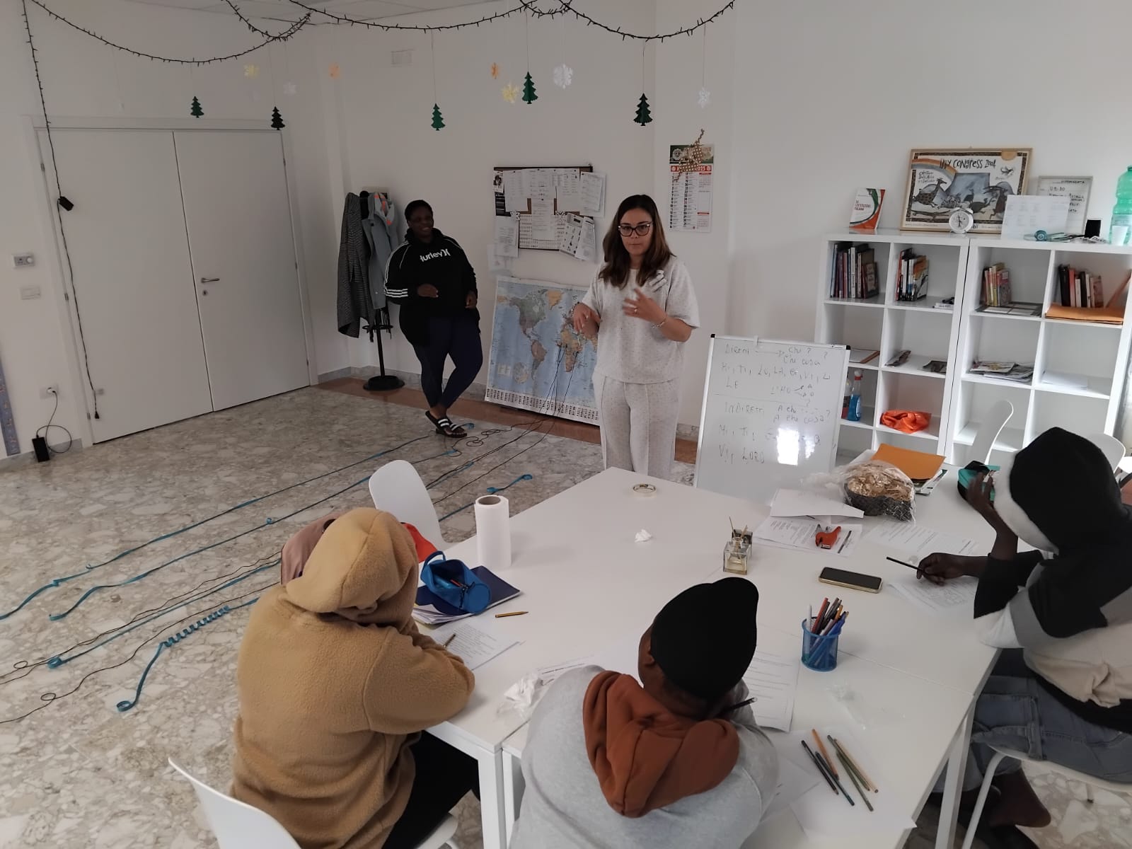 In vista della prossima “𝐆𝐢𝐨𝐫𝐧𝐚𝐭𝐚 𝐌𝐨𝐧𝐝𝐢𝐚𝐥𝐞 𝐝𝐞𝐥 𝐑𝐢𝐟𝐮𝐠𝐢𝐚𝐭𝐨”, anche il progetto 𝐒𝐀𝐈 di Orsara di Puglia è impegnato in alcune attività laboratoriali, come le “Le lingue parlate del mondo”. Con le beneficiarie del 𝐒𝐢𝐬𝐭𝐞𝐦𝐚 𝐝𝐢 𝐀𝐜𝐜𝐨𝐠𝐥𝐢𝐞𝐧𝐳𝐚 𝐞 𝐈𝐧𝐭𝐞𝐠𝐫𝐚𝐳𝐢𝐨𝐧𝐞 promosso dal Comune Orsara di Puglia e gestito dalle cooperative sociali Medtraining e Kaleidos abbiamo collegato con dei fili i vari Paesi di origine delle ragazze con la cartina geografica dell’Italia, il luogo in cui oggi sono accolte. Attraversando il mare, realizzato con dei nastri azzurri, abbiamo “ripercorso” il viaggio che ha portato loro in Italia e abbiamo condiviso pensieri ed emozioni.