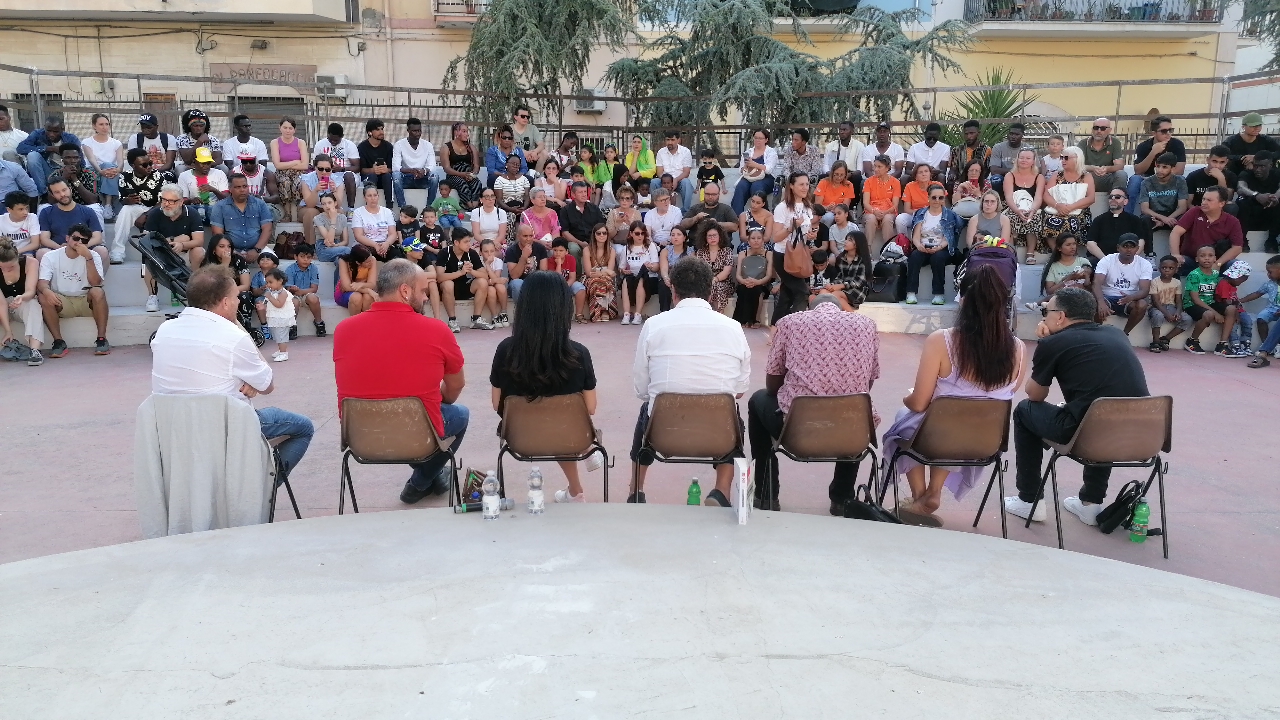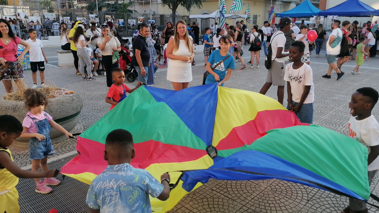 Mostra dei prodotti realizzati dai beneficiari dei SAI, spettacoli con fuoco e di equilibrismo, giochi per bambini, attività ludiche, trucca bimbi, laboratorio di bolle di sapone, treccine africane, danze popolari, stand delle culture ed un bellissimo concerto a cura dei ritmi dettati dalle batterie dei Power Drum Band. Tra i momenti più importanti, la presentazione del VII rapporto “Agromafie e caporalato 2025” e l’allestimento della mostra “Vite in transito” del fotografo Francesco Garofano, che attraverso i suoi scatti racconta la quotidianità dei migranti accolti nei SAI di Cerignola ampliamento e San Ferdinando di Puglia. Nel corso della serata sono state anche consegnate ai vari beneficiari dei progetti SAI le sacche realizzati dai laboratori di sartoria sociale SAI “Oltre ogni trama”, che oltre a cucire stoffe cuciono relazioni umane e sociale. Ė stato anche esposto in piazza il sudario per Gaza realizzato sempre nei laboratori di sartoria che unisce simbolicamente il dolore delle beneficiarie che hanno lasciato la loro terra ed i loro cari ed il dolore della madre palestinese che ha perso 9 figli nel corso di uno dei tanti bombardamenti degli israeliani. «Ė stata davvero una bellissima festa, una cosa che qui a Cerignola non avevamo mai visto, nonostante il grande lavoro dei progetti SAI – ha detto Maria Dibisceglia, assessora alle Politiche Sociali del Comune di Cerignola – . Coinvolgere anche la città in un momento come quello che stiamo vivendo ci aiuta a riflettere sui temi dell’accoglienza, dell’integrazione e del lavoro».