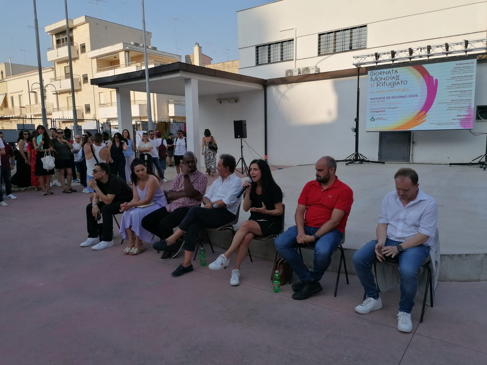 Che cos’è l’accoglienza? È diventare casa per sé stessi e per gli altri. È voglia di conoscere, avvicinarsi alle storie, conoscere gli altri. Ė musica, parole, volti, ritmo, giochi, cibo, arte, bandiere, colori. Come i vari colori del mondo che ieri a Cerignola hanno popolato piazza Prima Maggio con “Giornata Mondiale del Rifugiato”, diventata per una sera, grazie al patrocinio del Comune di Cerignola, contenitore di emozioni, speranza e persone che nel rito dell’incontro hanno avuto modo di ballare, chiacchierare, riflettere e sensibilizzare la comunità sul tema dei rifugiati, di chi è costretto a lasciare il proprio Paese a causa di guerre, violenze, persecuzioni. Anche quest’anno, dunque, alcune realtà impegnate nel campo dell’accoglienza e dell’immigrazione, tra cui Medtraining, Arci Comitato Provinciale di Foggia, Mondo Nuovo, Kaleidos, SocialService, Oltre la rete di imprese, Arcobaleno, Aladino, insieme a diversi enti, associazioni e realtà del territorio, hanno organizzato una serie di eventi per favorire occasioni di riflessione e conoscenza sul tema dei rifugiati. Sono dodici, infatti, i progetti SAI della Capitanata aderenti all’iniziativa: Manfredonia, Orsara di Puglia, Candela, San Ferdinando di Puglia, Cerignola, Cerignola ampliamento, Poggio Imperiale, Candela Vulnerabili, Bovino, Foggia, Casalnuovo Monterotaro, Stornara, Lucera.