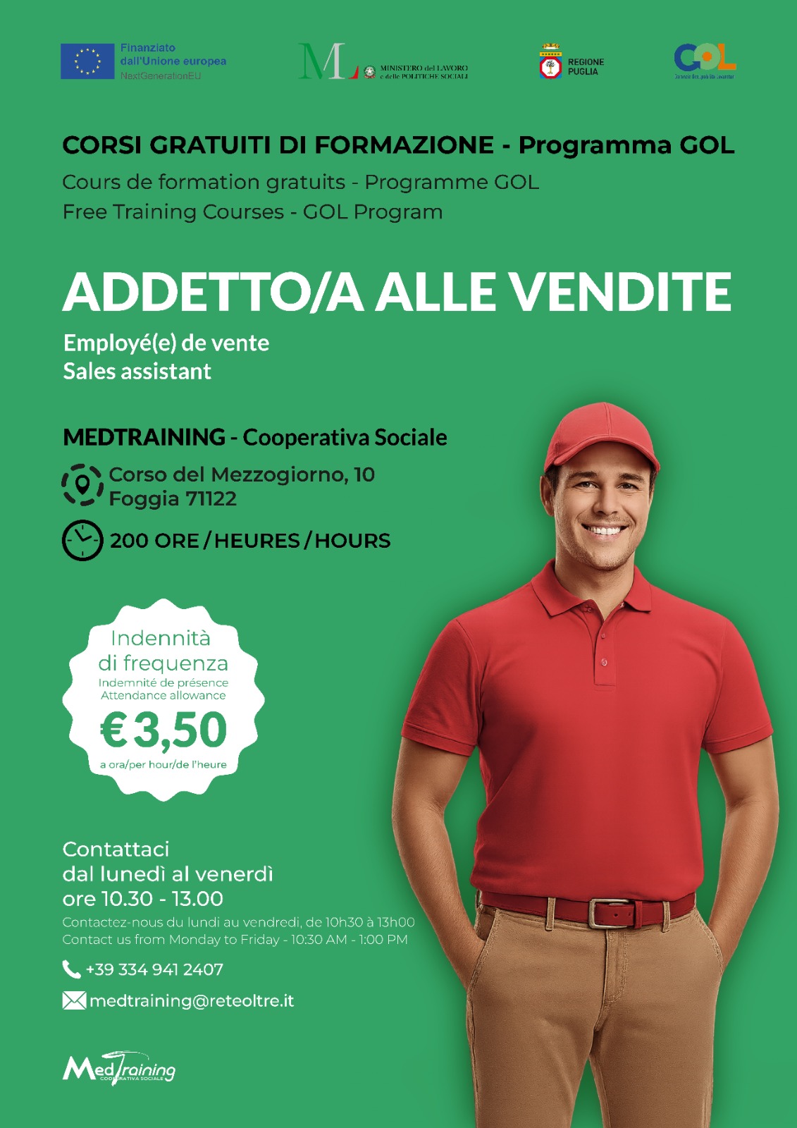La cooperativa sociale Medtraining promuove nuovi percorsi formativi gratuiti per disoccupati nell’ambito del Programma GOL – Garanzia Occupabilità Lavoratori della Regione Puglia.