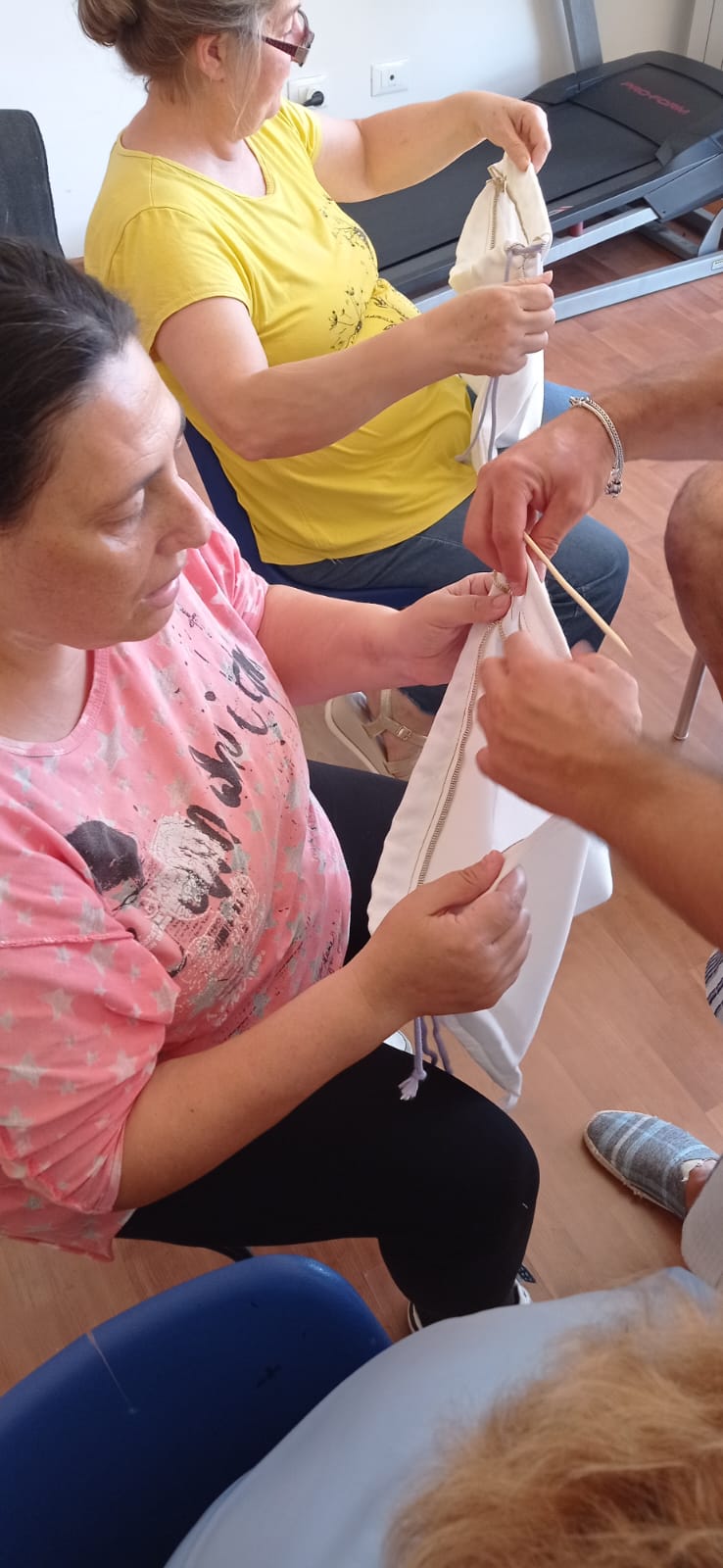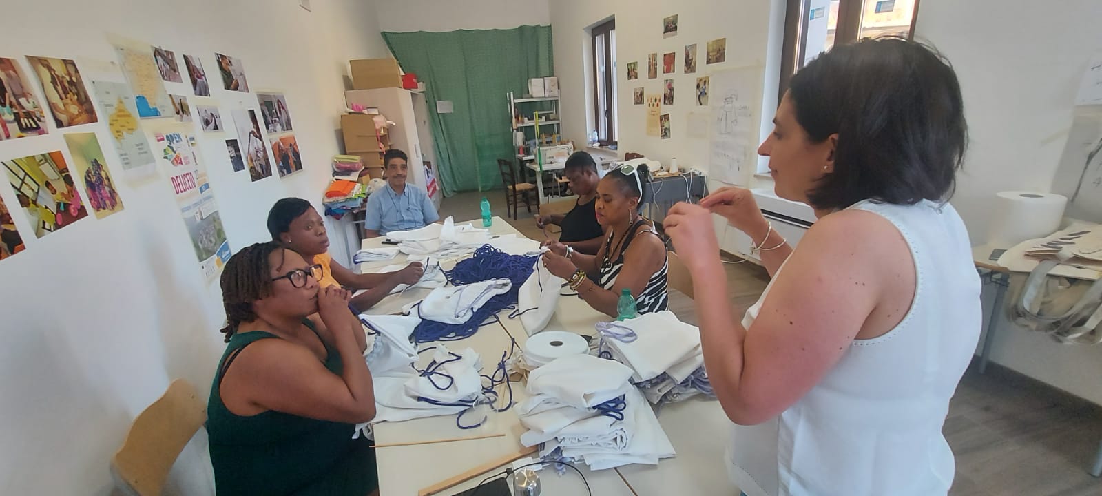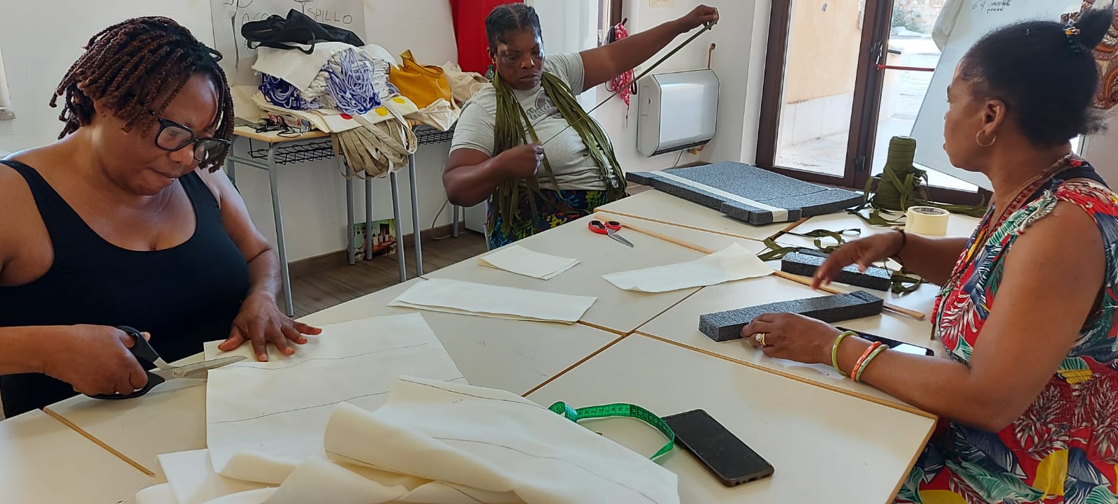 Nel laboratorio di sartoria creativa “𝐓𝐫𝐚𝐌𝐚𝐫𝐞𝐓𝐞𝐫𝐫𝐞 c’è aria di fermento. Stiamo realizzando le sacche che saranno offerte durante la “Festa della mietitura – Quann m’temme ‘ru grén” che si terrà a Deliceto sabato 2 agosto. Le stiamo realizzando con le beneficiarie del progetto 𝐒𝐀𝐈 – 𝐒𝐢𝐬𝐭𝐞𝐦𝐚 𝐝𝐢 𝐀𝐜𝐜𝐨𝐠𝐥𝐢𝐞𝐧𝐳𝐚 𝐞𝐝 𝐈𝐧𝐭𝐞𝐠𝐫𝐚𝐳𝐢𝐨𝐧𝐞 Candela Vulnerabili promosso dal Comune di Candela – Fg e gestito da Medtraining. Il Centro di Salute Mentale di Deliceto ha accettato di collaborare alla realizzazione delle sacche: noi le cuciamo e gli ospiti del Centro Diurno Arcobaleno le confezionano. È il terzo anno che partecipiamo, come Candela Vulnerabili, a questo evento organizzato da Alkemia e Gruppo Folk Skarìa, al quale collaborano alcune realtà che si prendono cura delle fragilità sul territorio. Lo scorso anno Vicky si è resa protagonista battendo, in tempi e forza fisica, tutti i mietitori. Lei era proprietaria di una piantagione di cacao in Costa d’Avorio. L’esperienza del lavoro nel suo campo sarà la testimonianza che porteremo in dono, oltre le sacche e il cibo etnico, ai partecipanti alla Festa.