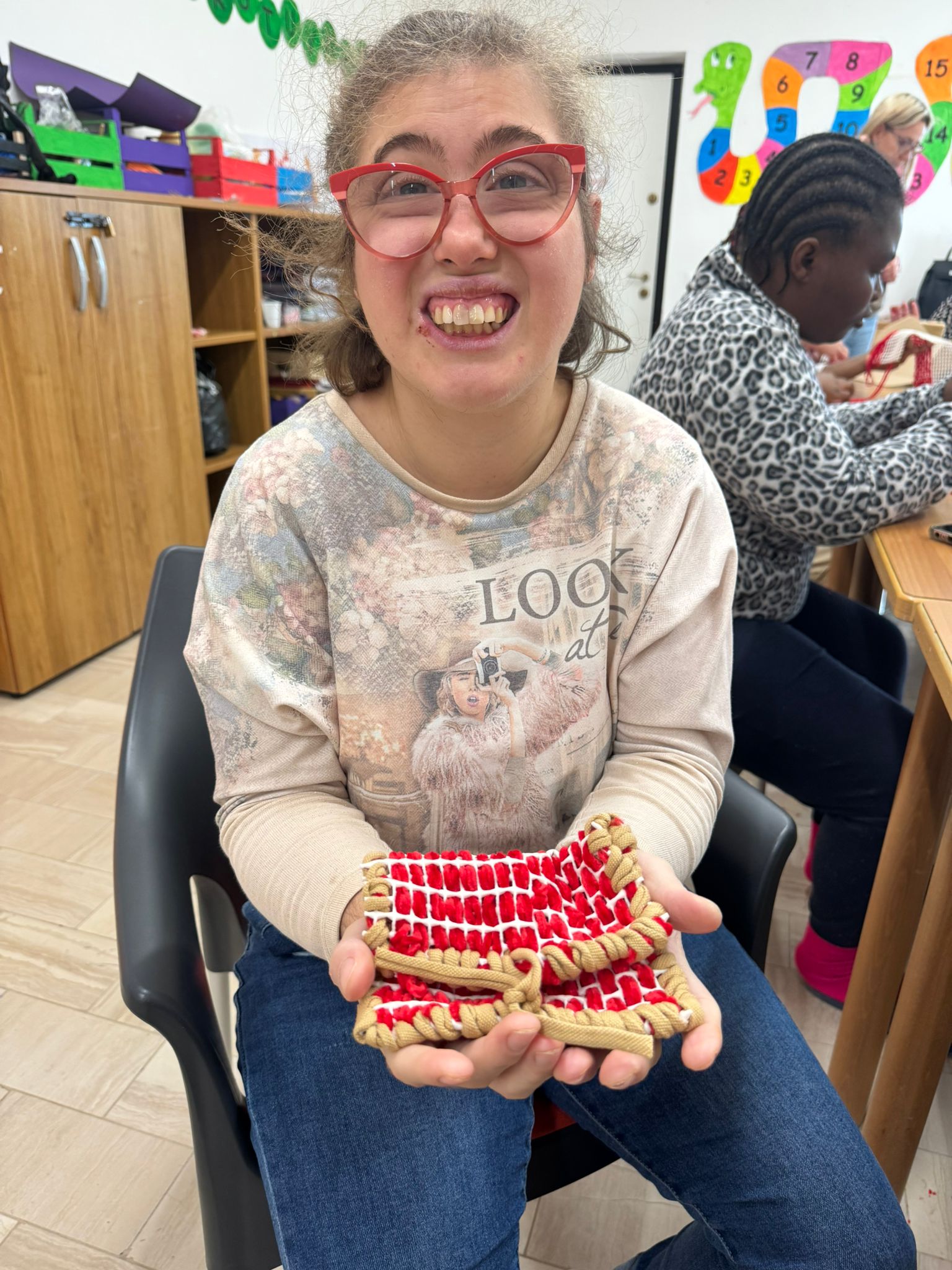 Con la magica tecnica della tessitura, e sotto la guida esperta e affettuosa della signora Angela (a cui va un ringraziamento speciale! ) e delle nostre instancabili educatrici, sono nati dei fantastici borselli unici e coloratissimi!