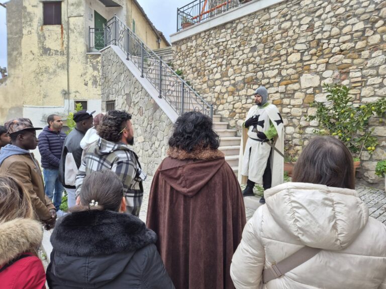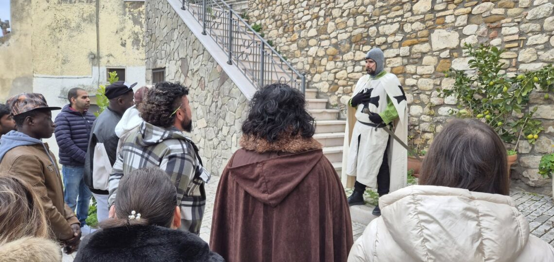 Un’importante occasione di socializzazione e confronto per i nostri beneficiari che hanno avuto modo di conoscere la storia della comunità ospitante, curiosi hanno posto domande e poi raccontato alcune curiosità dei loro paesi di origine. Hanno avuto l’occasione per vivere il borgo non solo come luogo, come spazio di condivisione e partecipazione attiva. di vedere come si viveva ai tempi, visitare l’antico forno a paglia per la cottura del pane ed infine uno di loro è stato nominato cavaliere.
