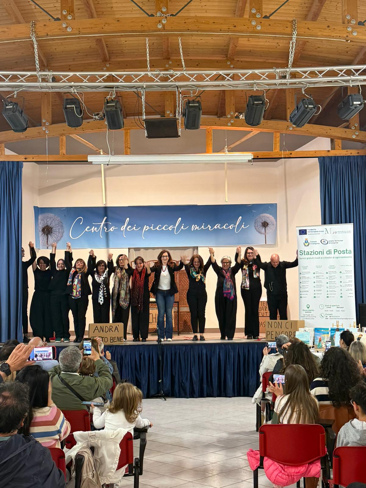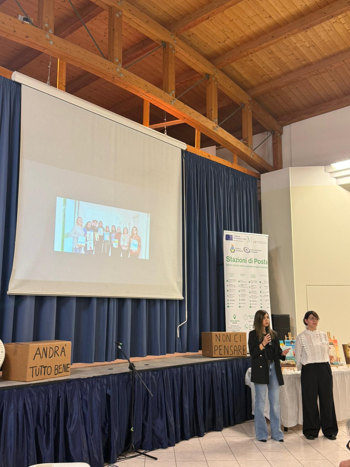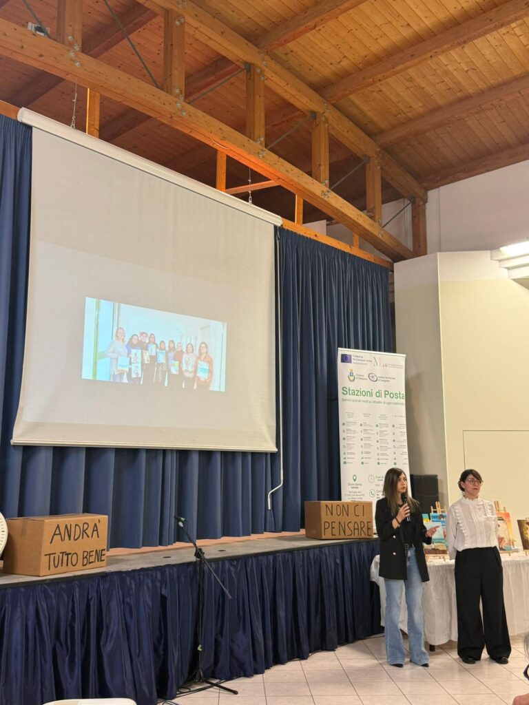 Al momento di restituzione pubblica del cammino compiuto è intervenuto anche il sindaco di Cerignola Francesco Bonito, che ha proposto di esporre le opere realizzate nel corso di Arte presso la Biblioteca Comunale. Sono state proiettate anche una serie di immagini che racchiudono il lavoro del progetto 𝐒𝐭𝐚𝐳𝐢𝐨𝐧𝐞 𝐝𝐢 𝐏𝐨𝐬𝐭𝐚 in questi due anni, concludendo una serata molto intensa e coinvolgente per tutti i presenti. I laboratori e gli eventi finali sono organizzati dal servizio “Stazioni di Posta” gestito dalle cooperative sociali SocialService, Medtraining, Altereco e Alice.