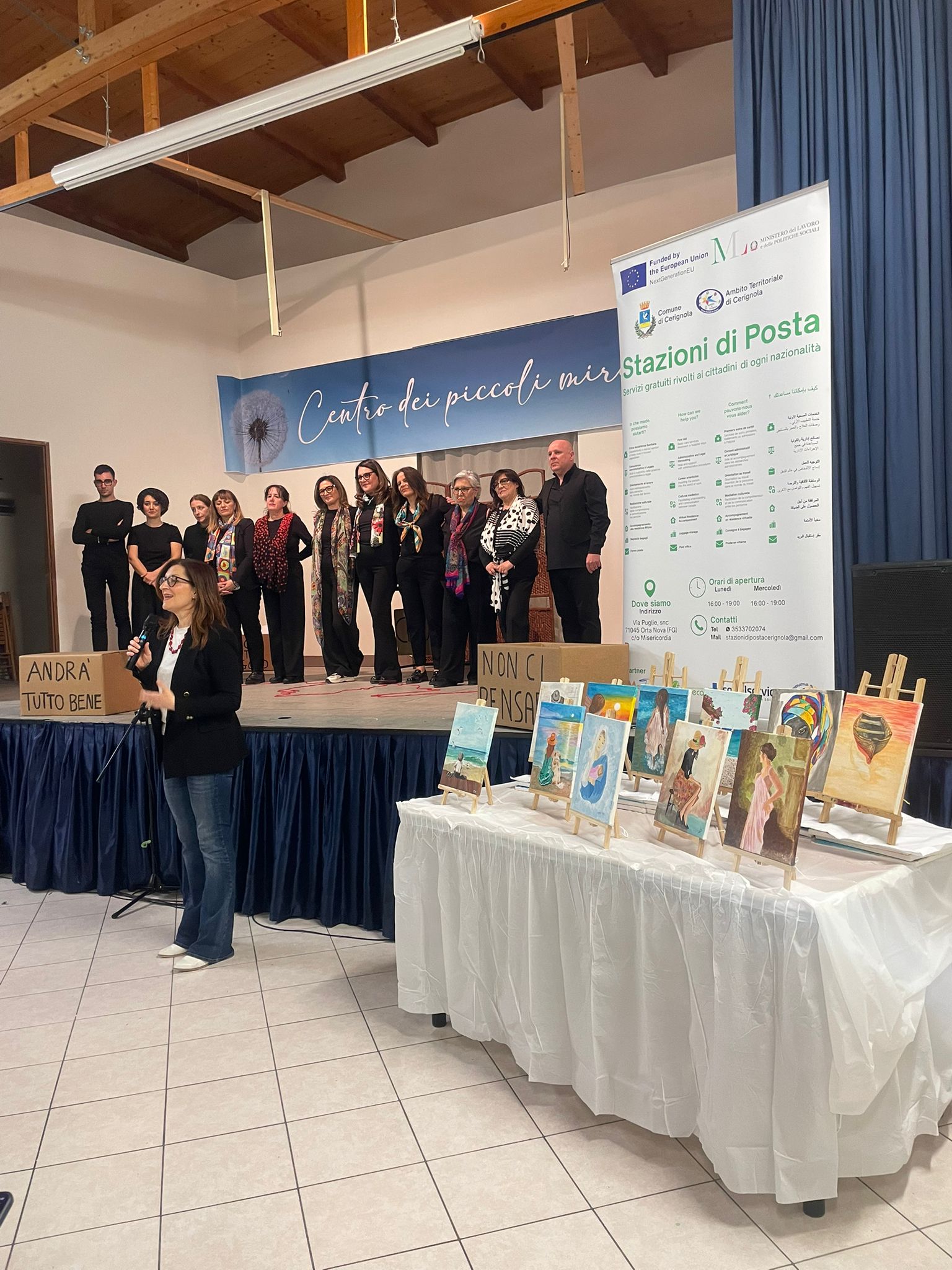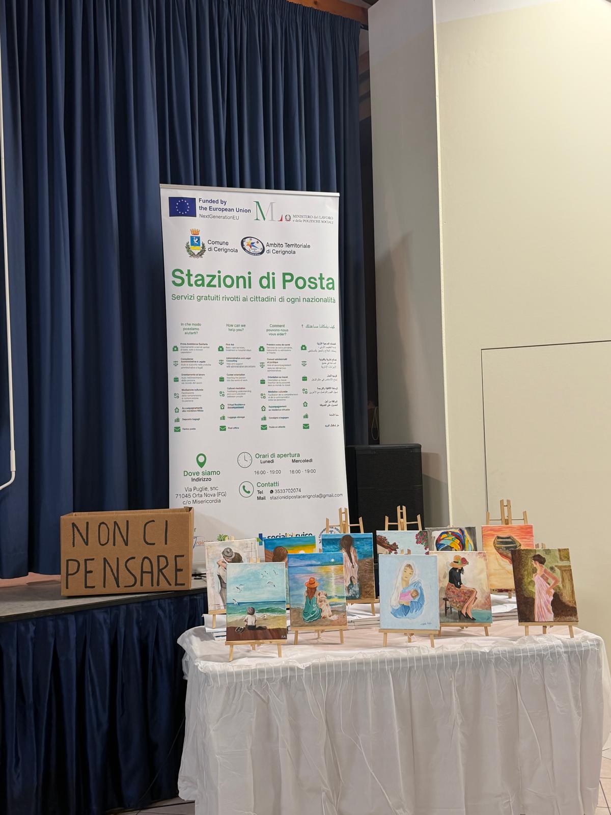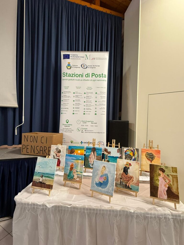 Due spettacoli teatrali e due esposizioni di lavori artistici per concludere con una restituzione pubblica i percorsi formativi seguiti in questi mesi, che hanno visto cittadini italiani e migranti vivere momenti di socializzazione e di rafforzamento delle proprie risorse personali. Lo scorso mese di settembre il Centro Servizi “Stazioni di posta” attivo nell’Ambito Territoriale di Cerignola ha promosso i laboratori di “Teatro” e di “Arte e Pittura” con la finalità di accrescere competenze, favorire processi di inclusione sociale e contrastare la povertà. I laboratori si sono svolti nelle sedi di Cerignola ed Orta Nova. Nei giorni scorsi, quindi, è stato il momento di raccontare alla comunità quanto fatto durante i percorsi di formazione, la cui partecipazione è stata gratuita.