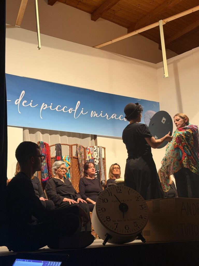 Ad Orta Nova, presso Casa di Accoglienza per Anziani “Istituto Madre Tarcisia Vasciaveo, è andato in scena lo spettacolo “Dove le storie si incontrano”, con testo e regia di Francesco Gravino che ha curato questo laboratorio teatrale. E’ stata anche allestita la mostra delle tele realizzate dai partecipanti al laboratorio di “Arte e Pittura” guidato dalla docente Giuditta Ciffo. Il secondo evento, invece, si è svolto a Cerignola con la performance teatrale “Centro dei piccoli miracoli”, ospitata nel teatro della parrocchia dello Spirito Santo, con testo e regia di Antonella Cirillo, che ha curato il cammino formativo. Anche in questo caso, è allestita la mostra delle tele realizzate dai partecipanti al laboratorio di “Arte e Pittura” guidato sempre dalla docente Giuditta Ciffo. ù