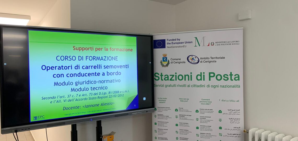 Un’opportunità concreta per acquisire competenze tecniche altamente richieste nel mercato del lavoro. Un’occasione preziosa per saperne di più ed ottenere una certificazione riconosciuta a livello nazionale che può diventare un valore aggiunto nel curriculum di chi cerca nuove occasioni lavorative, specialmente nei settori della logistica e dell’industria. È il senso dei corsi gratuiti in “Sicurezza dei lavoratori” e “Utilizzo di carrelli semoventi industriali” promossi dal Centro Servizi “Stazioni di posta” attivo nell’Ambito Territoriale di Cerignola che hanno avuto la finalità di accrescere competenze da poter spendere nel mercato del lavoro, favorire processi di inclusione sociale e contrastare la povertà. Il servizio “Stazioni di Posta”, impegnato in attività di contrasto alla povertà e alla grave marginalità sociale, ha quindi organizzato due percorsi nelle sedi di: Cerignola, sita in Via Gran Sasso…